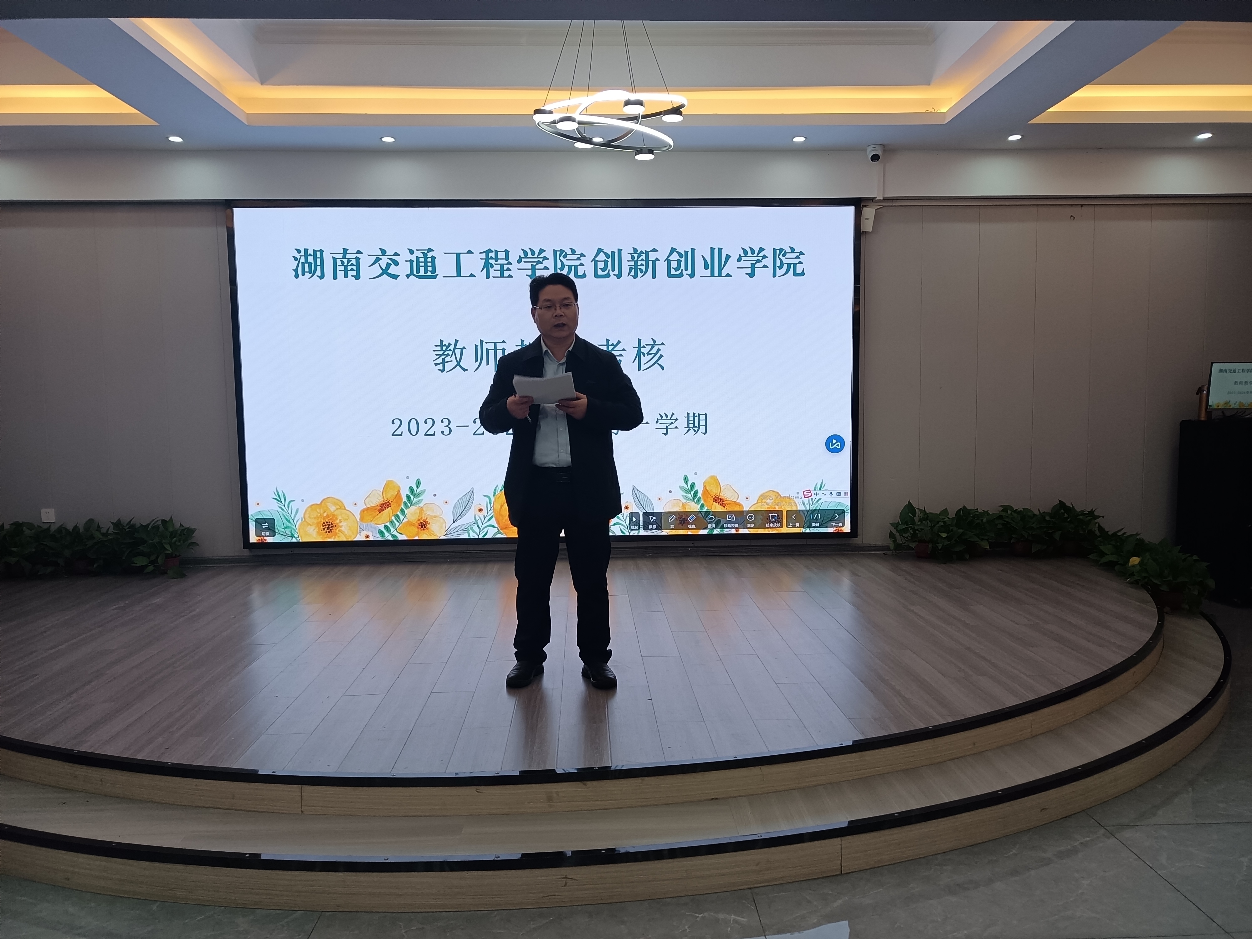为了展示创新创业学院教师2023——2024年度课堂教学成果和思政育人水平,根据期末工作部署,2024年1月8日上午9点半——下午4点,学院在路演厅举办首届教师教学技能考核,共有15位中青年教师参加了现场教学考核。此次考核校领导十分重视,刘义伦副校长莅临指导,董晔卉院长亲自主持了本次考核工作。