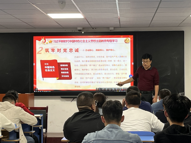 为了贯彻学习习近平新时代中国特色社会主义思想,学习理论知识,夯实党员和预备党员的思想基础,加深思想视野广度,提高思想境界高度,于11月9日,机电工程学院党总支委员会在410开展“筑牢对党的忠诚专题教育”党课,此次党课由机电工程学院党总支书记罗斐教授主持并授课。