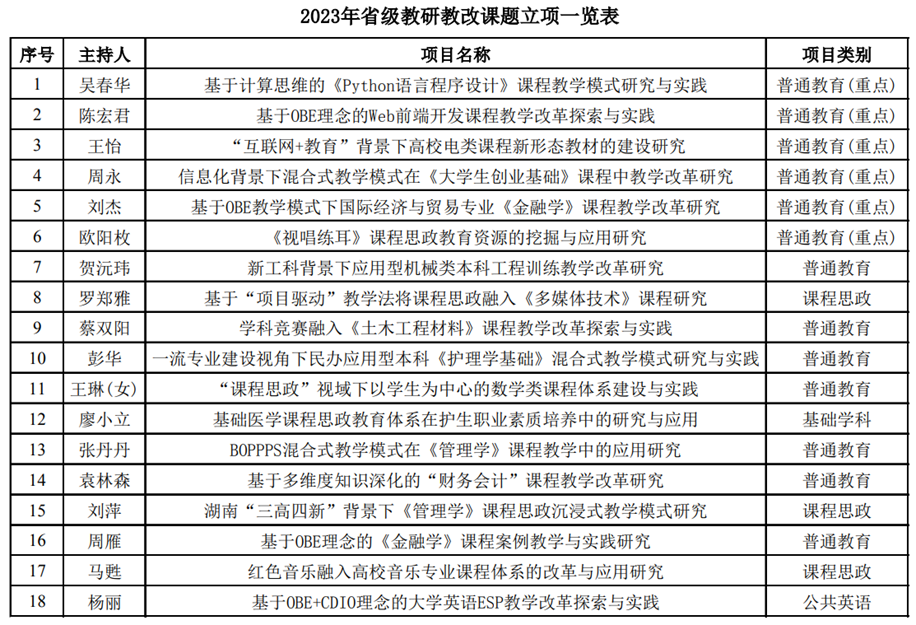 本网讯记者  赵红深  通讯员  肖湘龙常态教学促“第一课堂”质量提升,以学习研讨促“课堂革命”落实。2023年,best365官网进一步推进教育教学改革,以常规教研为基础,以听课、评课为切入点,积极探索教学模式与课程建设,实现提质增效目标,成效显著。年内教学改革项目省级立项18项,其中重点项目6项;经济管理学院以“完善高校学科特色发展分类评价”项目获湖南省深化新时代教育评价改革试点院系。