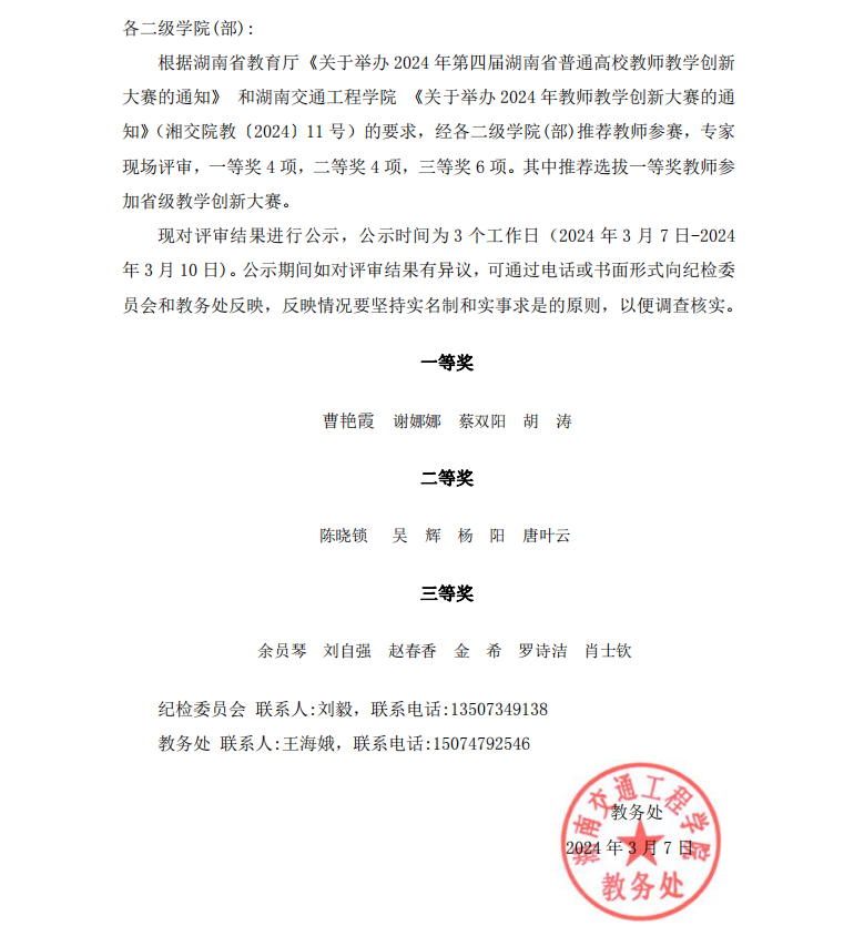 2024 年best365中国官方网站 教师教学创新大赛结果公示