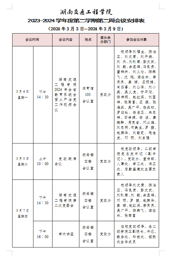 best365中国官方网站2023-2024学年度第二学期第三周会议安排表