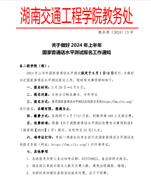 关于做好2024年上半年普通话等级考试报名工作通知pdf
