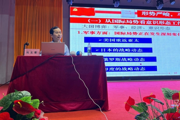 刘文君以《以党的二十大精神武装头脑,打好意识形态领域阵地战》为题,为第37期入党积极分子培训班上党课。他围绕意识形态是什么、怎么判定意识形态、遇到意识形态怎么办这三个问题,紧跟当下及过往的热点事件向全体入党积极分子生动地指出了意识形态在社会体系中的重要地位。他强调,广大师生要坚持马克思主义在意识形态领域的指导地位,积极弘扬社会主义核心价值观,自觉抵制不良思想文化的侵蚀,针对网络不当言论要敢于发声、善于斗争,守牢意识形态主阵地,凝聚跨越发展正能量。