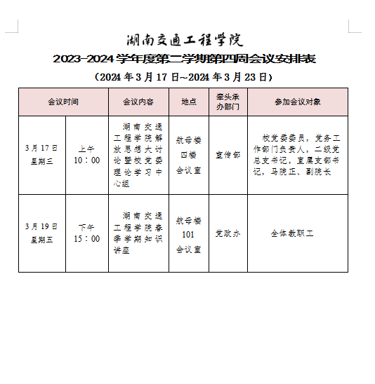 best365中国官方网站2023-2024学年度第二学期第四周会议安排表