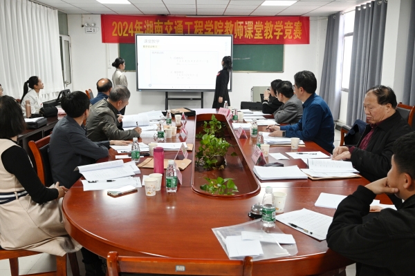 赛事分理工组和文科组两组进行。理工组在航母楼301室举行,副校长刘义伦任组长,经济管理学院院长朱忠祥、人文与艺术学院院长石峥嵘、马克思主义学院院长杨波、公共基础课部主任周克省、高科院副院长邓必雄、教务处副处长黄玲娟任评委。张丹丹老师主持。文科组在强能楼317室举行,教务处处长肖四喜任组长,交通运输工程学院院长罗迎社、电气与信息工程学院院长杨兵初、机电工程学院院长杨启正、医学技术与护理学院院长秦晓群、人文与艺术学院副院长刘彪、督导彭斌任评委。教务处副处长王海娥主持。