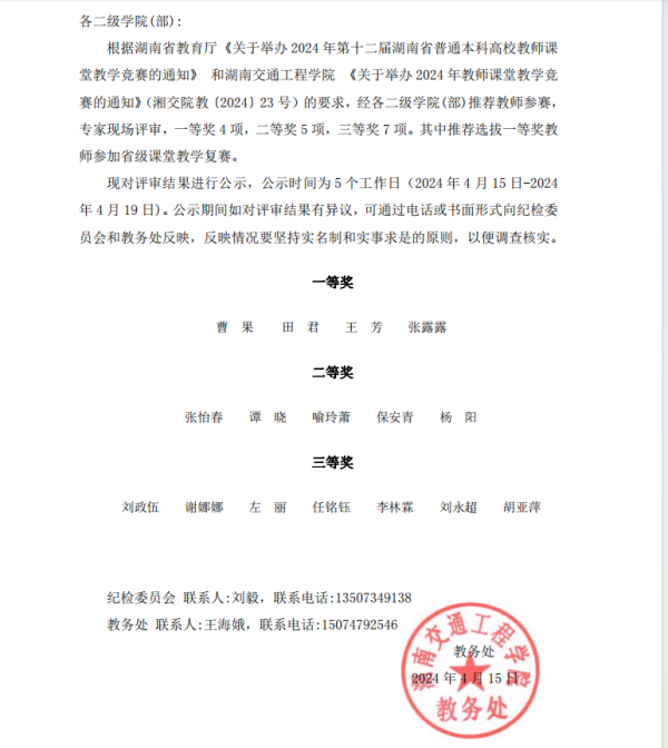 2024年best365中国官方网站教师课堂教学竞赛结果公示