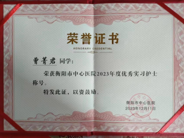36 | 曾菁君 | 女 | 护理专2103班 | 衡阳市中心医院 |