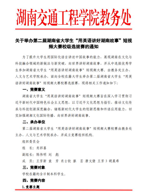 关于举办第二届湖南省大学生“用英语讲好湖南故事”短视频大赛校级选拔赛的通知.pdf