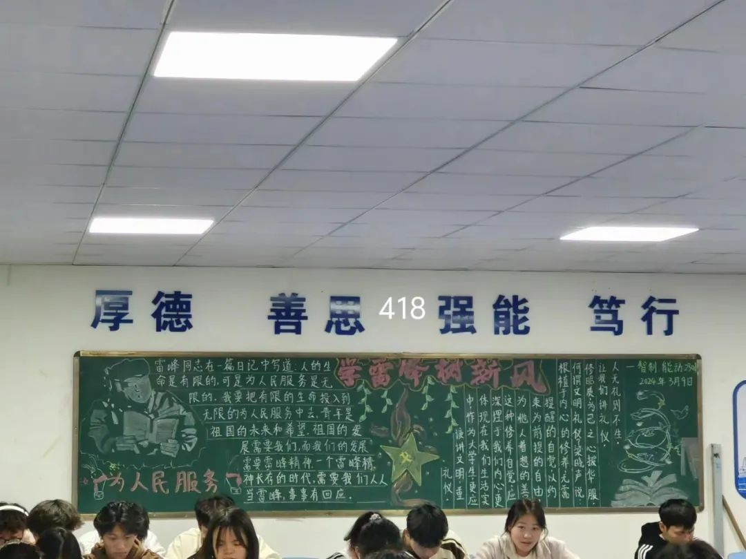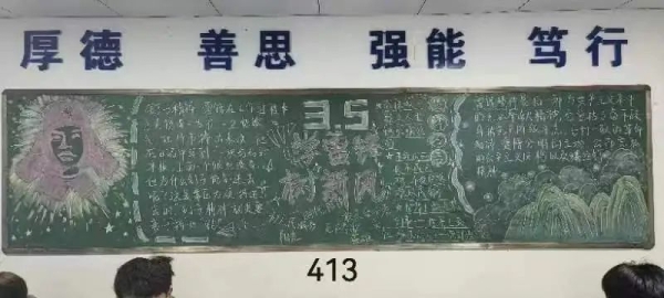 为了深入学习雷锋精神,培养有理想、敢担当、能吃苦、肯奋斗的新时代好青年。机电工程学院于3月11日晚19:20成功举行以“不忘初心学雷锋,青春使命共传承”为主题的黑板报评比活动。