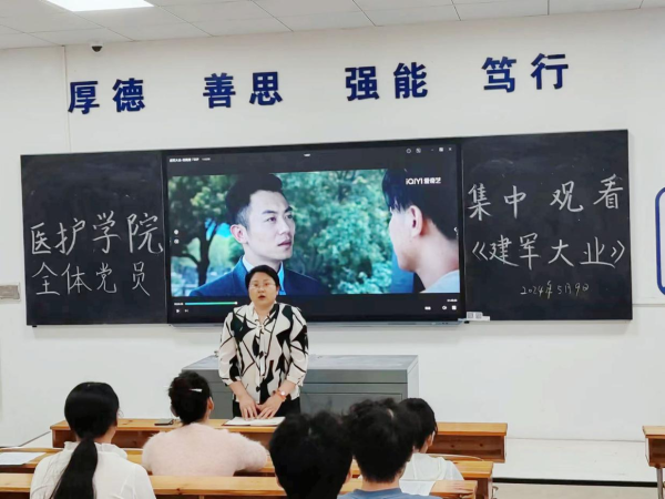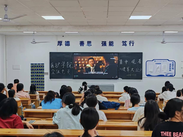为铭记革命历史,传承红色精神,5月9日下午,医学技术与护理学院于教学楼201教室开展“观看红色电影,深化以学明史”主题党日活动,组织学院全体在校党员及入党积极分子观看红色电影《建军大业》。