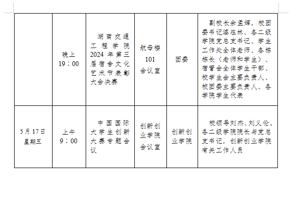 best365中国官方网站2023-2024学年度第二学期第十一周会议安排表