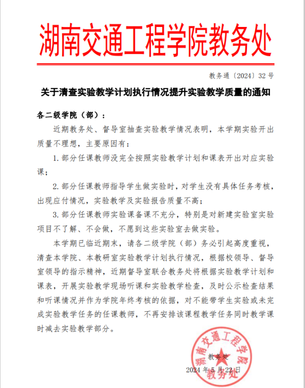 关于清查实验教学计划执行情况提升实验教学质
