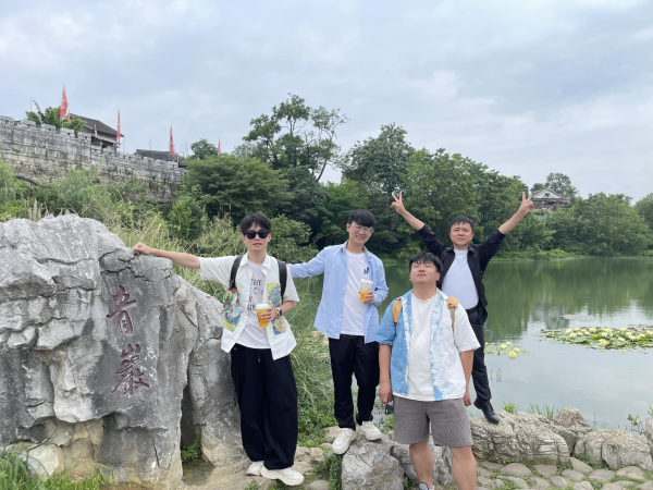 带队男教师在青岩古镇合影