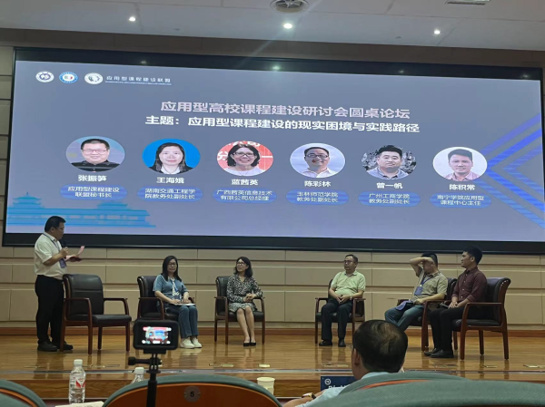 应用型课程建设培训组先后听取了6场报告。北京信息科技大学周哲海教授的《面向产出的课程大纲制定与课程目标评价》、华中师范大学徐敏教授的《信息技术与课程创新》、桂林电子科技大学郭庆教授的《AiGC驱动的多维协同应用型课程探讨》,超星泛雅集团课程总监李楠的《人工智能背景下知识图谱助力教学改革和模式创新》、南宁学院副校长陈雄章教授的《“四重构、四重塑”应用型课程建设》、应用型建设联盟秘书长张振笋教授的《基于产教融合的课程改革实践》。
