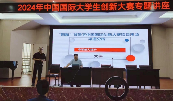 为切实提升学校2024年中国国际大学生创新大赛作品质量和参赛水平,进一步培养学生的创新意识、创新思维、创新能力,助推学校双创教育高质量发展,近日,我院组织举办“中国国际大学生创新大赛”专题培训讲座。
