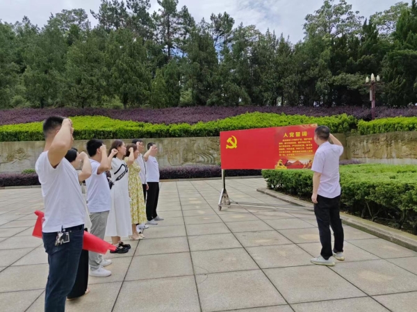 在罗荣桓元帅铜像广场,全体成员肃立行注目礼、三鞠躬默哀一分钟,绕铜像一圈,表达了对罗荣桓元帅的崇高敬意和深切缅怀。这一刻,每个人的心中都充满了对英雄的敬仰和对革命精神的追思。随后, 带领党支部所有同志重温入党誓词,铭记初心使命,坚定理想信念。大家纷纷表示,要不忘初心、牢记使命,为党的事业矢志奋斗。