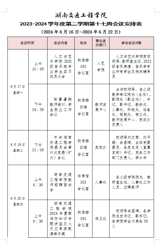 best365中国官方网站2023-2024学年度第二学期第十七周会议安排表