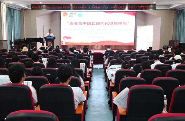 漆在林宣读了学校团委“关于2024年暑期‘三下乡’社会实践团队立项的通知”,希望同学们弘扬奉献、友爱、互助、进步的志愿精神,坚持与祖国同行、为人民奉献,以青春梦想、用实际行动为实现中国梦作出新的更大贡献。用青春的行动践行“请党放心、强国有我”的铮铮誓言。