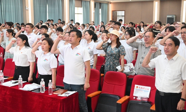 全体志愿者在仪式上进行了出征宣誓。每一句誓词都代表着同学们对本次“三下乡”社会实践活动的信心与决心,同时也代表着他们对青年志愿活动的支持与参与。