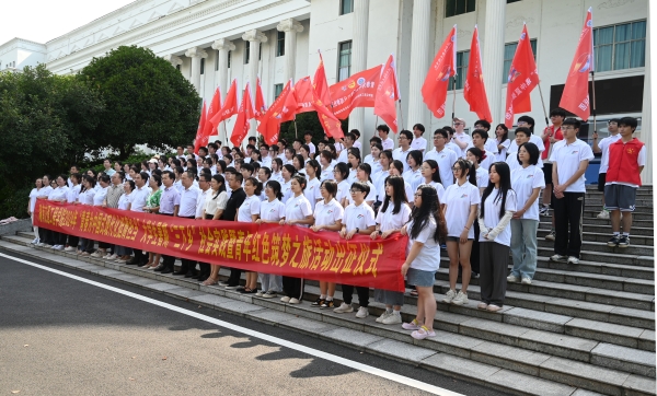 接着,全体领导和志愿者同学们移步学校综合实验实训大楼前隆重举行三下乡出征合影。