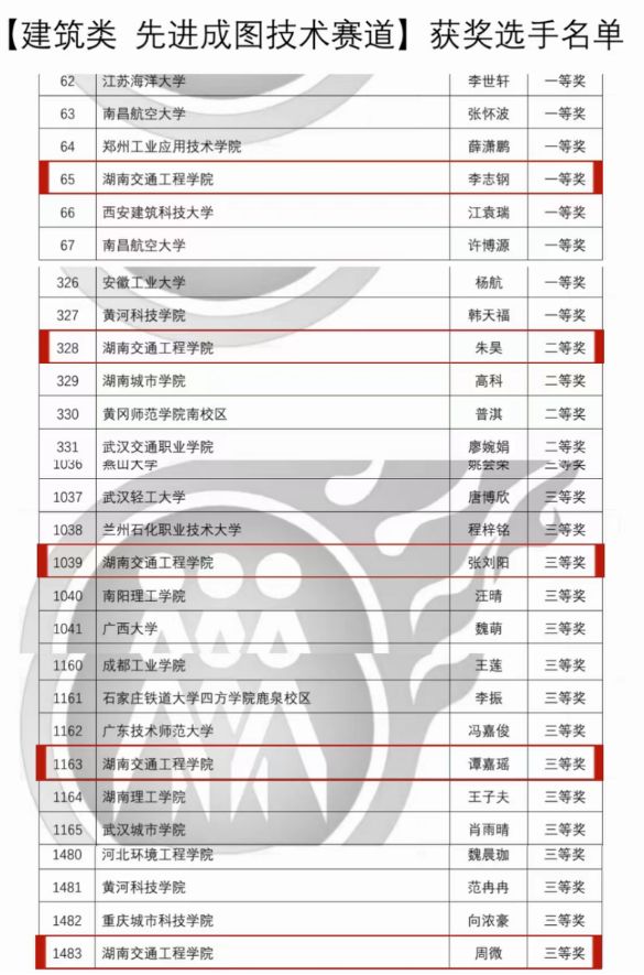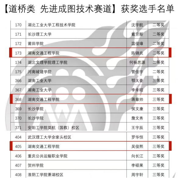 经过现场比拼专家综合评审,大赛组委会8.4公布了获奖名单,best365中国官方网站交通运输工程学院由涂宇、王威、刘颖、林进、周凌峰、夏艳波、王磊等老师指导的14名学生获国家级奖项10个。其中:李志钢、朱昊、张刘阳、谭嘉瑶、周微同学分别获建筑类先进成图技术赛道国家级一等奖1项、二等奖1项、三等奖3项;李志钢、朱昊、张刘阳、谭嘉瑶、周微同学获筑类国家级团体三等奖1项;陈锦炎、蒋章帅、吴俊熙同学获道桥类先进成图技术赛道国家级二等奖1项、三等奖2项;陈锦炎、蒋章帅、吴俊熙、黄西、顾凡同学获道桥类国家级团体三等奖1项。