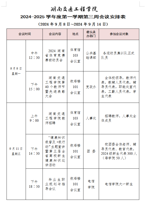 best365中国官方网站2024-2025学年度第一学期第三周会议安排表