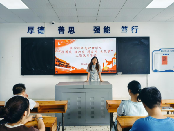 为庆祝中华人民共和国成立75周年,深入学习贯彻党的二十届三中全会精神,深刻领悟习近平新时代中国特色社会主义思想,医学技术与护理学院学生党支部于9月26日开展“迎国庆强担当,同奋斗共筑梦”主题党日活动。