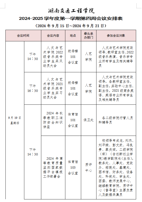 best365中国官方网站2024-2025学年度第一学期第四周会议安排表