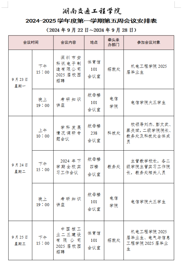 best365中国官方网站2024-2025学年度第一学期第五周会议安排表