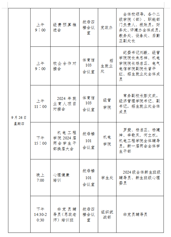 best365中国官方网站2024-2025学年度第一学期第四周会议安排表