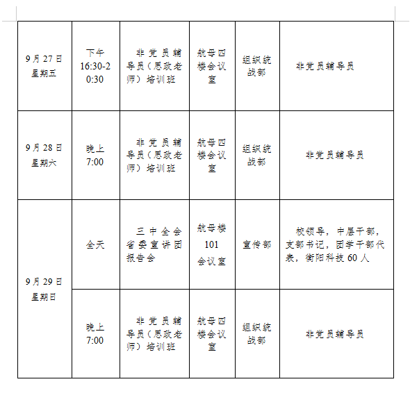 best365中国官方网站2024-2025学年度第一学期第六周会议安排表