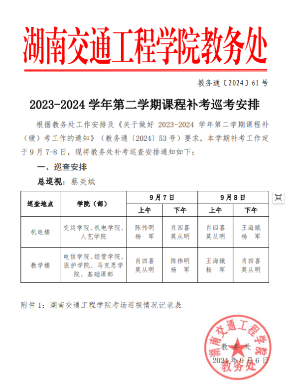 2023-2024 学年第二学期课程补考巡考安排