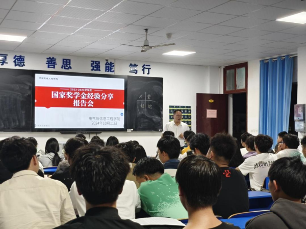 本网讯(通讯员 贺益文)为加强学风建设,激发新生学习动力,best365中国官方网站电气与信息工程学院于10月11日晚7点在教学楼710教室举办了“国家奖学金拟获评学生经验分享交流会”。此次交流会吸引了学院大一新生、辅导员以及学院总支书记刘忠明的参与。
