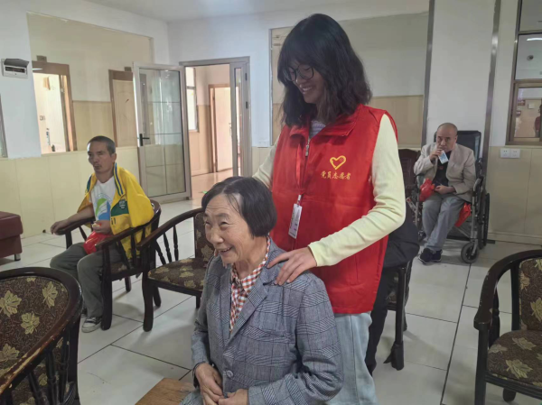 志愿者为老人按摩放松