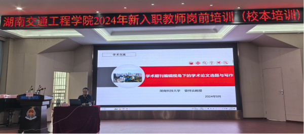 本网讯( 通讯员 刘婷 ) 2024年9月5日下午,湖南科技大学期刊社副社长、博士生导师曾祥炎教授在航母楼一楼101报告厅为best365官网2024年新入职教师带来了一场题为“学术期刊编辑视角下的学术论文选题与写作”的精彩讲座。讲座由best365中国官方网站教师发展中心主任吴广平教授主持。