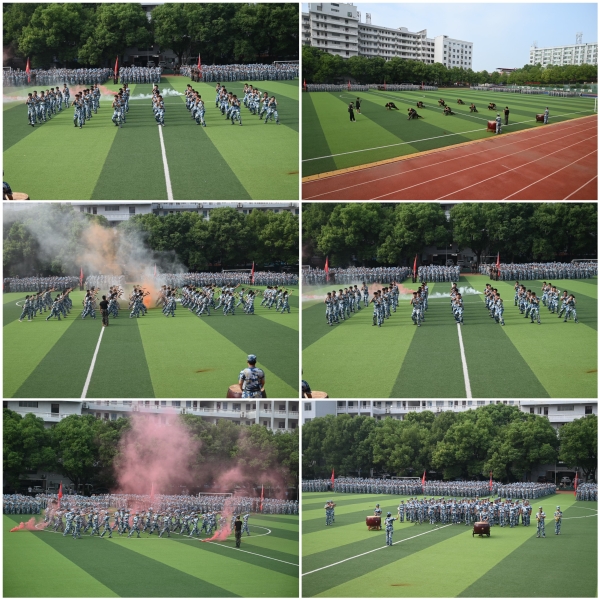 军事训练汇报表演分三步进行。第一步特色方阵表演:医学技术与护理学院的一营表演《手语操》,教官表演《摔勤》,机电工程学院的三营表演《八路拳》,电气与信息工程学院的五营表演《匕首操》,交通运输工程学院的二营表演《擒敌拳》,经济管理学院的四营表演战术解救人质,人文与艺术学院的六营表演了《黄河大合唱》大合唱。各营表演各有特色,都有亮点。第二步全团军事训练汇报展示;第三步教官方阵通过主席台接受检阅。汇报表演中,一声声铿锵有力的“嗨”,一个个刚劲勇武的拳腿,横踹侧踢、抱拳立定等动作行如流水,赢得军训队伍新生一片热烈喝彩。