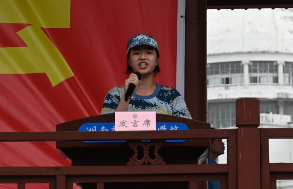 人文与艺术学院音表本2402班胡珮君代表新生发言。她分享了军训的成长与蜕变,表达了对教官和老师的感激之情,表示未来无论有多少挑战,无论有多少困难,我们都会坚韧不屈,永不放弃。