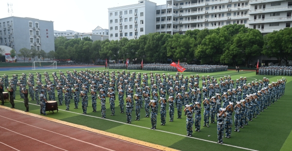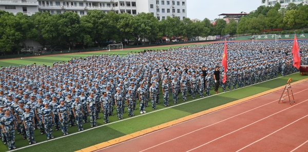 军训汇报大会暨开学典礼在庄严肃穆的国歌声中拉开帷幕。