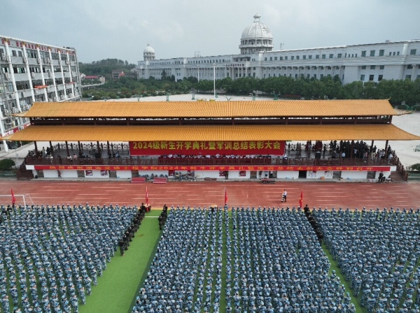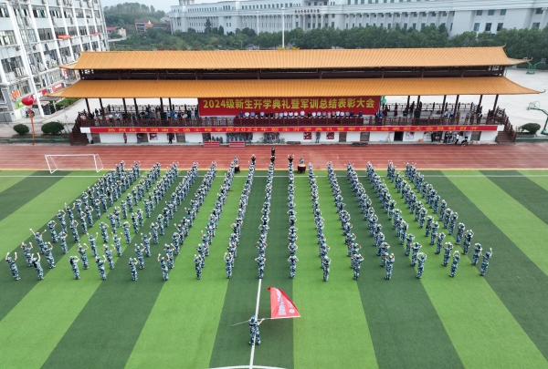本网讯( 通讯员 赵红深 李水华 摄影 大学生记者团喻威 张明煜 邓江林 徐薇 )9月14日上午,学校在田径运动场隆重举行2024级新生开学典礼暨军训总结表彰大会。校长陈治亚、党委书记刘文君、执行校长刘杰、名誉校长刘平娥、常务副校长彭文武、党委副书记冯良贵、纪委书记刘毅,副校长余孟辉、蔡炎斌,董事董晔卉,党委委员邓丽、赵荣华、罗斐出席。相关职能处室负责人,各二级学院院长、党总支书记(副书记),全体教官、辅导员和教师代表以及2024级新生参加了典礼。典礼由刘文君主持。