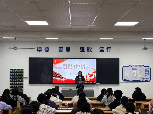 为助力学生深刻理解党的宗旨和使命,认识医学事业在党的事业中的重要地位,引导学生树立正确价值观,增强社会责任感,10月23日晚7点,医学技术与护理学院举办“点亮思想灯塔,引领新风帆”党课活动。此次党课由学生党支部书记贺九芳主持。