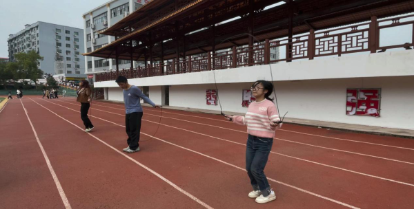 本次比赛设有团体跳绳和单人跳绳两个项目。团体跳绳极大地考验了同学们之间的协作能力。赛场上,队员们齐心协力,绳子在空中有节奏地飞舞,每一次成功的跳跃都伴随着团队成员们的齐声呐喊,那是青春活力与团队精神的完美融合。