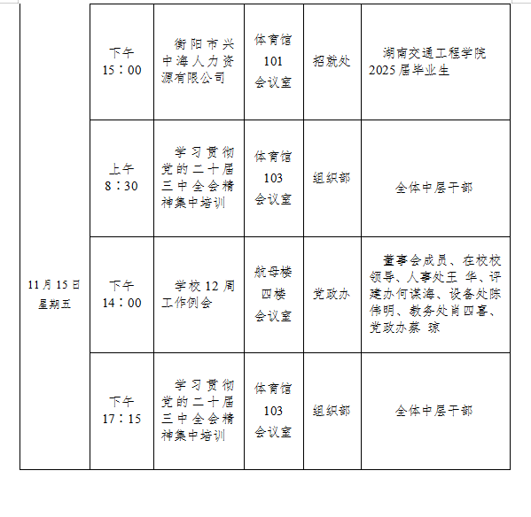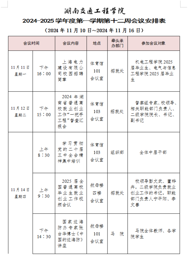 best365中国官方网站2024-2025学年度第一学期第十一周会议安排表