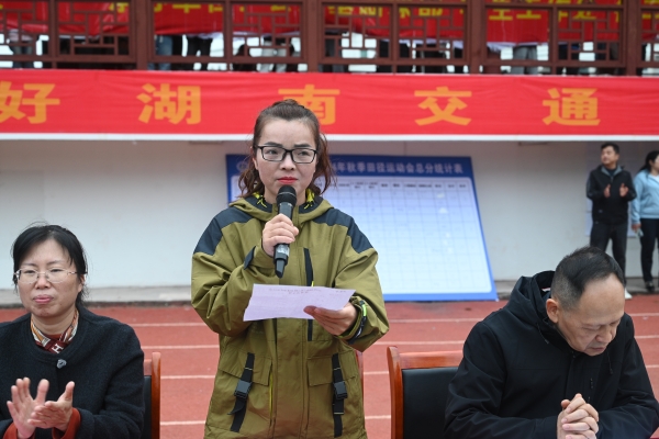 本次运动会总裁判长熊阿凤老师宣布了本次运动会比赛成绩和团体总分名单。与会领导分别为获奖的优胜团体颁发了奖牌。