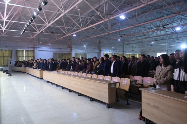副校长蔡炎斌作《凝神聚力,全力以赴确保本科教学工作合格评估顺利通过》动员报告。报告从“认清形势,树立信心”“正视问题,攻坚克难”“压实责任,狠抓落实”三个部分全面分析了best365官网在本科评估中存在的问题和堵点,研判了面临的形势与任务,部署了工作的内容和方向,提出了工作的目标和要求。他指出,本科教学工作合格评估是一场不能输也输不起的战争,是一场事关学校颜面、师生尊严的决战,全体教职员工要进一步凝心聚力,奋勇拼搏,以临战状态、必胜勇气,打赢学校本科教学工作合格评估攻坚战。他表示,学校启动评估工作以来,经历了多次动员和学习、全面建设、自查整改,也经历了自评、诊断式评估和专家评估,以评促建取得了显著成效,学校各方面条件发生了较大变化,办学条件进一步改善、教学质量稳步提升、师生员工的精神面貌发生了明显变化。同时,他就迎接合格评估工作提出了六点要求:一要加大宣传力度,营造冲刺氛围;二要制定工作进程,严格执行计划;三要组织精干力量,做好迎评准备;四要紧抓八项重点,确保各项达标;五要切实加强评估领导,建立高效评估运行机制;六要实行工作倒查和责任追究制度,确保迎评制度的严肃性。他强调,学校是我们赖以生存的大家庭,评建工作事关学校的生存和发展,涉及学校工作的方方面面,需要大家全员参与,各部门、各学院通力合作,齐抓共建,做到人人关心、人人参与、人人投入、人人有责,集中力量打好攻坚仗。