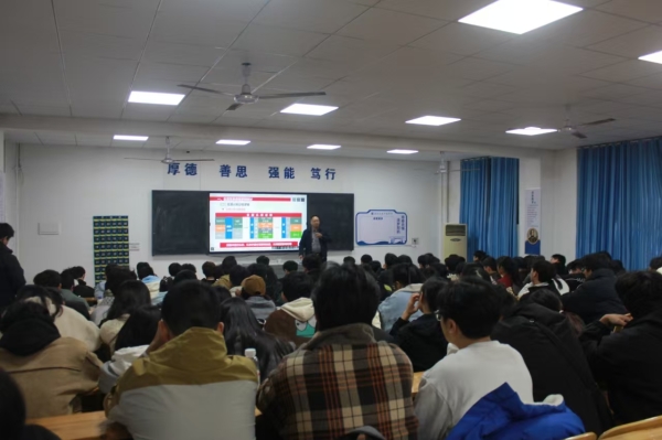 本网讯(通讯员 何旭阳 陈涛)11月26日晚7点,电气与信息工程学院(以下简称电信学院)在教学楼615教室成功举办了“职业规划大赛规则解读”会议。本次会议由电信学院党总支书记刘忠明主讲,各班班长、团支书、学习委员等学生干部出席。