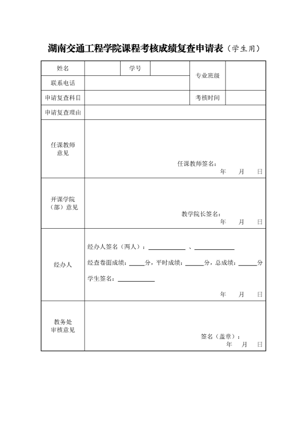 best365中国官方网站课程考核成绩复查申请表(学生用)