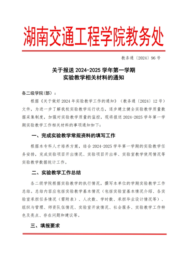 关于报送2024-2025学年第一学期实验教学相关材料的通知