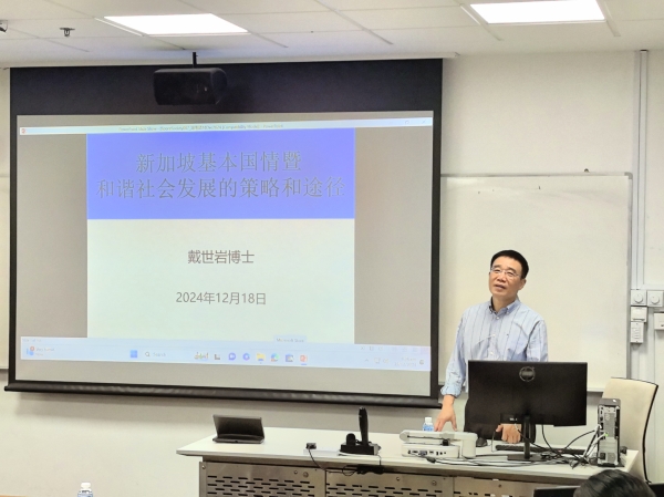 戴世岩教授为best365官网第二批在新加坡培训的教师作和谐社会发展策略专题讲座