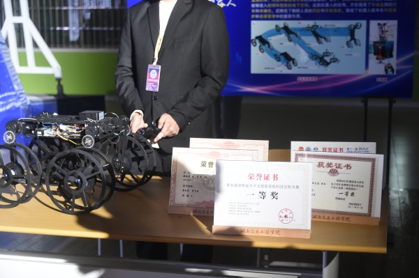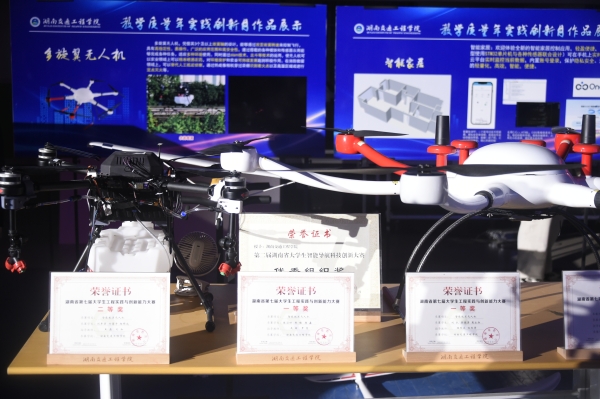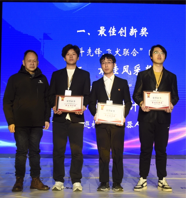 余孟辉宣读表彰决定。授予“北斗先锋,飞犬联合”团队最佳创新奖;“编队无人机”团队最佳风采奖;“三 栖巡检救援机器人”团队最佳设计奖;“3D 打印创意作品”等 6 个团队“优秀制作奖”。他希望受到表彰的团队能够认真总结在科技创新方面的经验, 继续保持积极进取的精神,在未来的学习和实践中取得更加卓越的成就;同时,要充分发挥示范和引领作用,激励更多的同学积极投身于科技创新活动。
