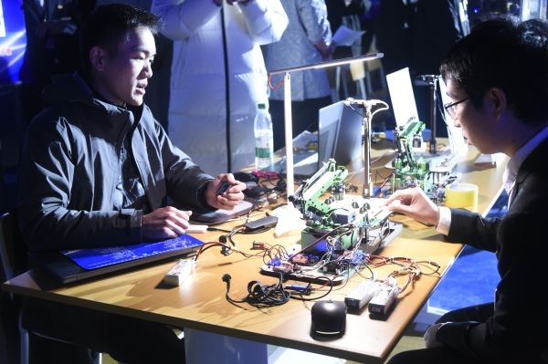 在智能无人机器人展示中,展示了智能物流搬运机器人,无人驾驶小车,智能塔吊检测系统和智能家居系统机器人,多旋翼无人机,3D打印过程及作品。